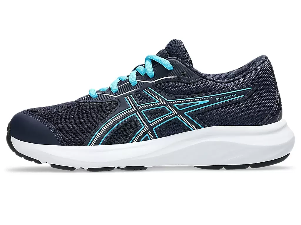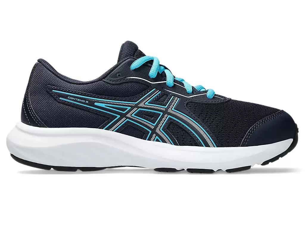 O sapato CONTEND™ 9 GRADE SCHOOL foi projetado para pés jovens. Detalhes como o reforço na ponta, a costura emborrachada na ponta e o solado de borracha maciça aumentam a durabilidade e prolongam a vida útil do sapato.