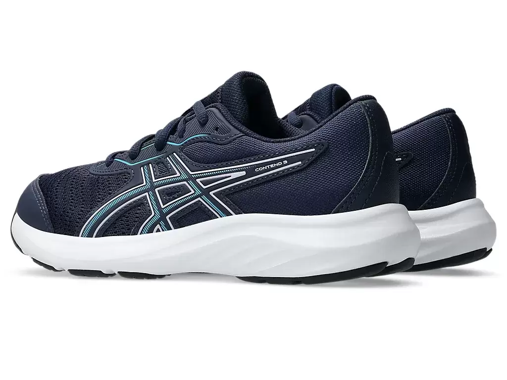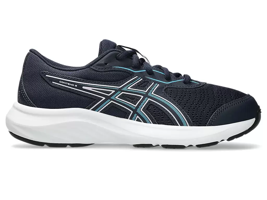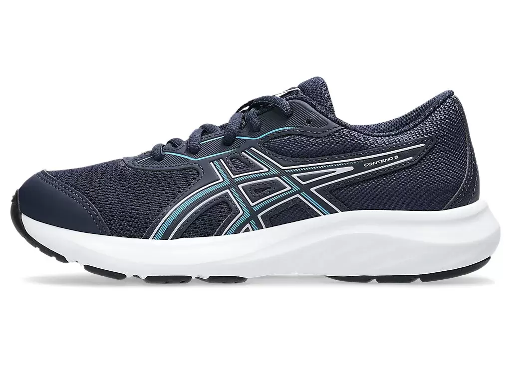 O sapato CONTEND™ 9 GRADE SCHOOL foi projetado para pés jovens. Detalhes como o reforço na ponta, a costura emborrachada na ponta e o solado de borracha maciça aumentam a durabilidade e prolongam a vida útil do calçado.