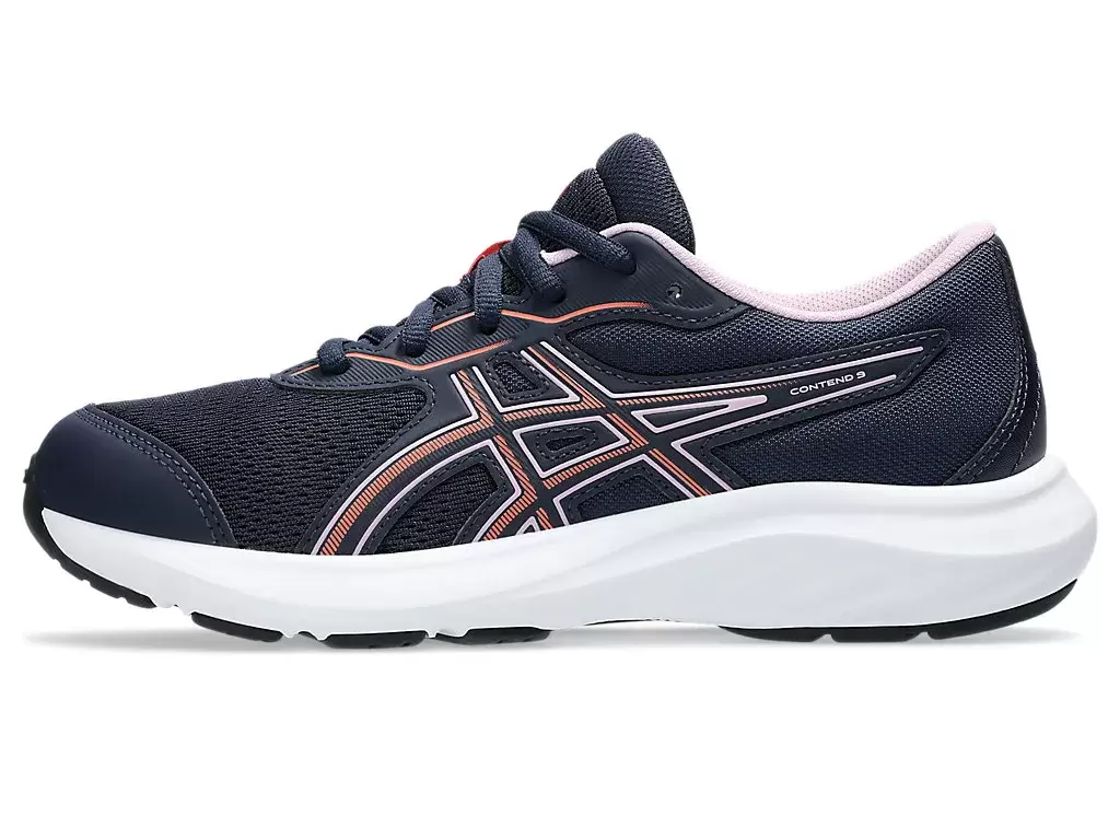 O sapato CONTEND™ 9 GRADE SCHOOL foi projetado para pés jovens. Detalhes como o reforço na ponta, a costura emborrachada na ponta e o solado de borracha maciça aumentam a durabilidade e prolongam a vida útil do calçado.