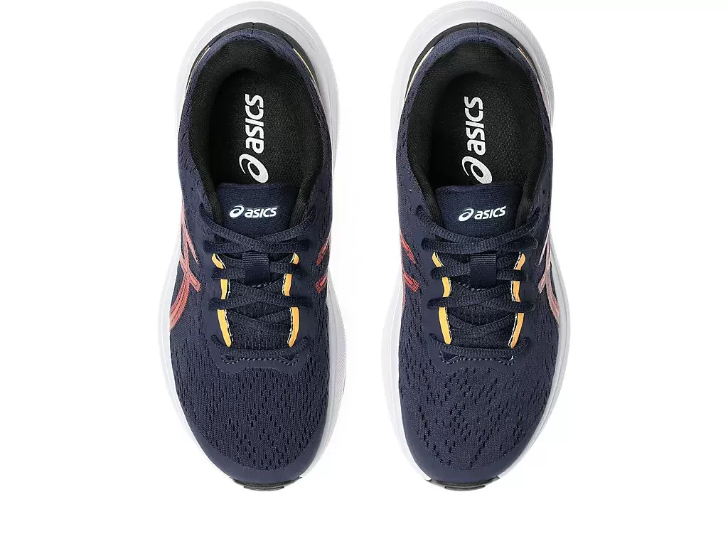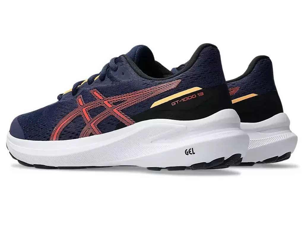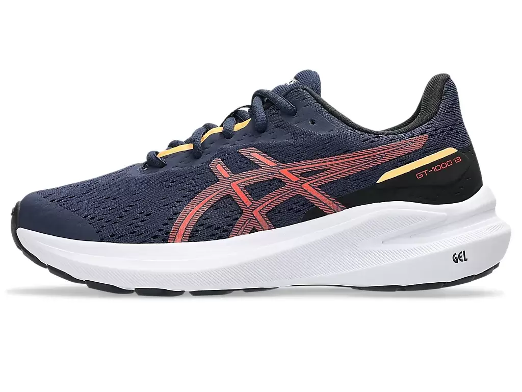 O pé aterrissa na parte externa do calcanhar e, em seguida, rola para dentro (prona) excessivamente, transferindo o peso para a borda interna em vez da planta do pé. O tênis GT-1000™ 13 GRADE SCHOOL é um modelo versátil e estável, ideal para diversas distâncias. Aprimoramos o amortecimento na planta do pé para proporcionar maior conforto e energia. Uma forma específica para crianças e um indicador de tamanho na palmilha ajudam a acomodar o crescimento dos pés. Além disso, o solado com reforço na parte medial do antepé e a costura de borracha na ponta foram projetados para aumentar a durabilidade.