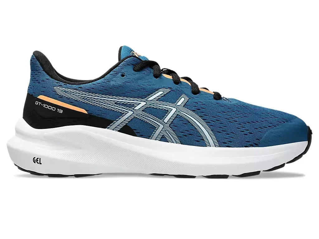 O pé aterrissa na parte externa do calcanhar e, em seguida, rola para dentro (prona) excessivamente, transferindo o peso para a borda interna em vez da planta do pé. O tênis GT-1000™ 13 GRADE SCHOOL é um modelo versátil e estável, ideal para diversas distâncias. Aprimoramos o amortecimento na planta do pé para proporcionar maior conforto e energia. Uma forma específica para crianças e um indicador de tamanho na palmilha ajudam a acomodar o crescimento dos pés. Além disso, o solado com reforço na parte medial do antepé e a costura de borracha na ponta foram projetados para aumentar a durabilidade.