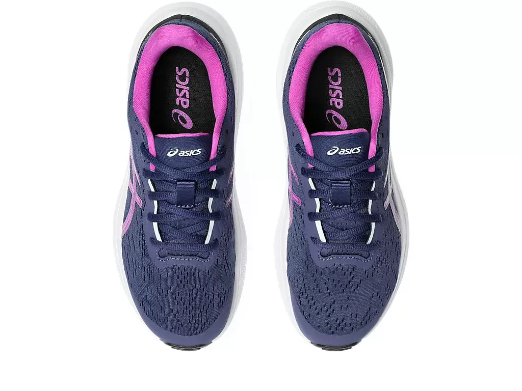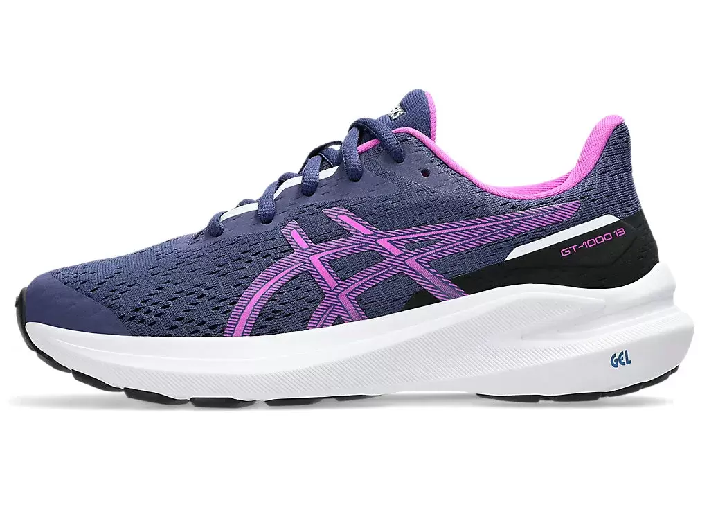 O pé aterrissa na parte externa do calcanhar e, em seguida, rola para dentro (prona) excessivamente, transferindo o peso para a borda interna em vez da planta do pé. O tênis GT-1000™ 13 GRADE SCHOOL é um modelo versátil e estável, ideal para diversas distâncias. Aprimoramos o amortecimento na planta do pé para proporcionar maior conforto e energia. Uma forma específica para crianças e um indicador de tamanho na palmilha ajudam a acomodar o crescimento dos pés. Além disso, o solado com reforço na parte medial do antepé e a costura de borracha na ponta foram projetados para aumentar a durabilidade.