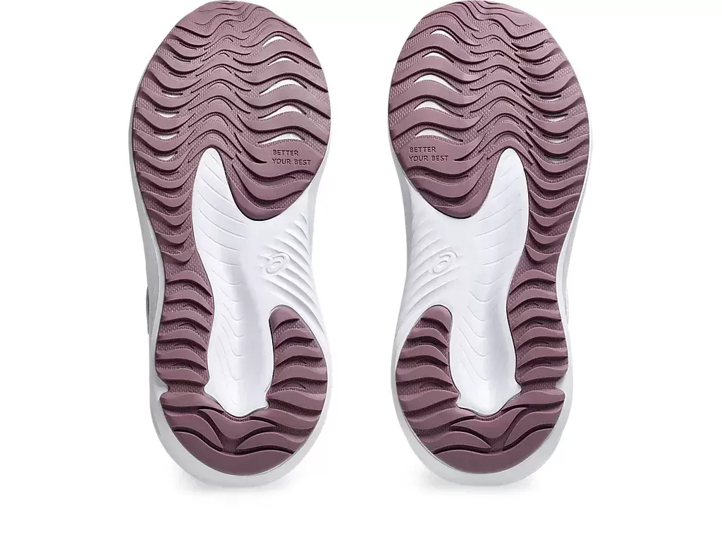 Enquanto isso, as listras ASICS® nas laterais são sobrepostas com um arco-íris para um visual atraente. Também integramos uma palmilha CUB MATCH™ com estampa de tigre® para ajudar as crianças a reconhecerem o pé esquerdo do direito.