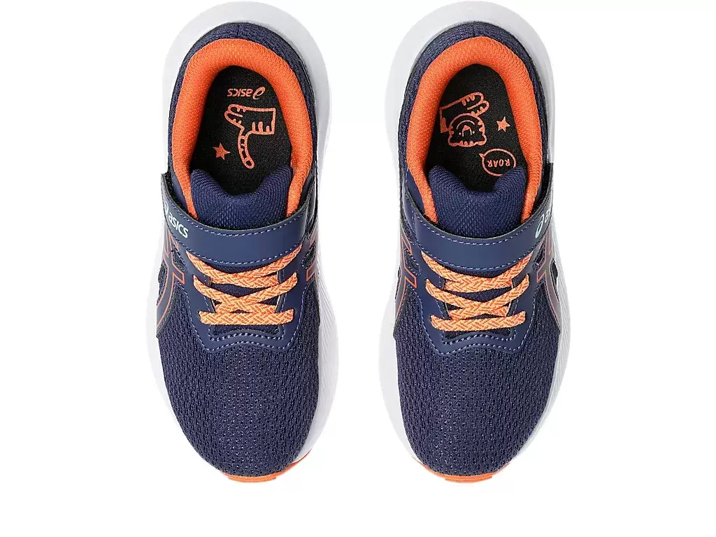 Enquanto isso, as listras ASICS® nas laterais são sobrepostas com um arco-íris para um visual atraente. Também integramos uma palmilha CUB MATCH™ com estampa de tigre® para ajudar as crianças a reconhecerem o pé esquerdo do direito.
