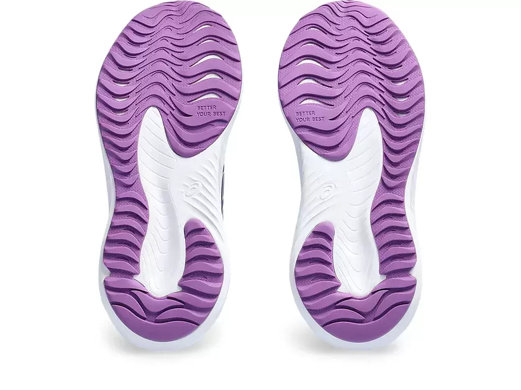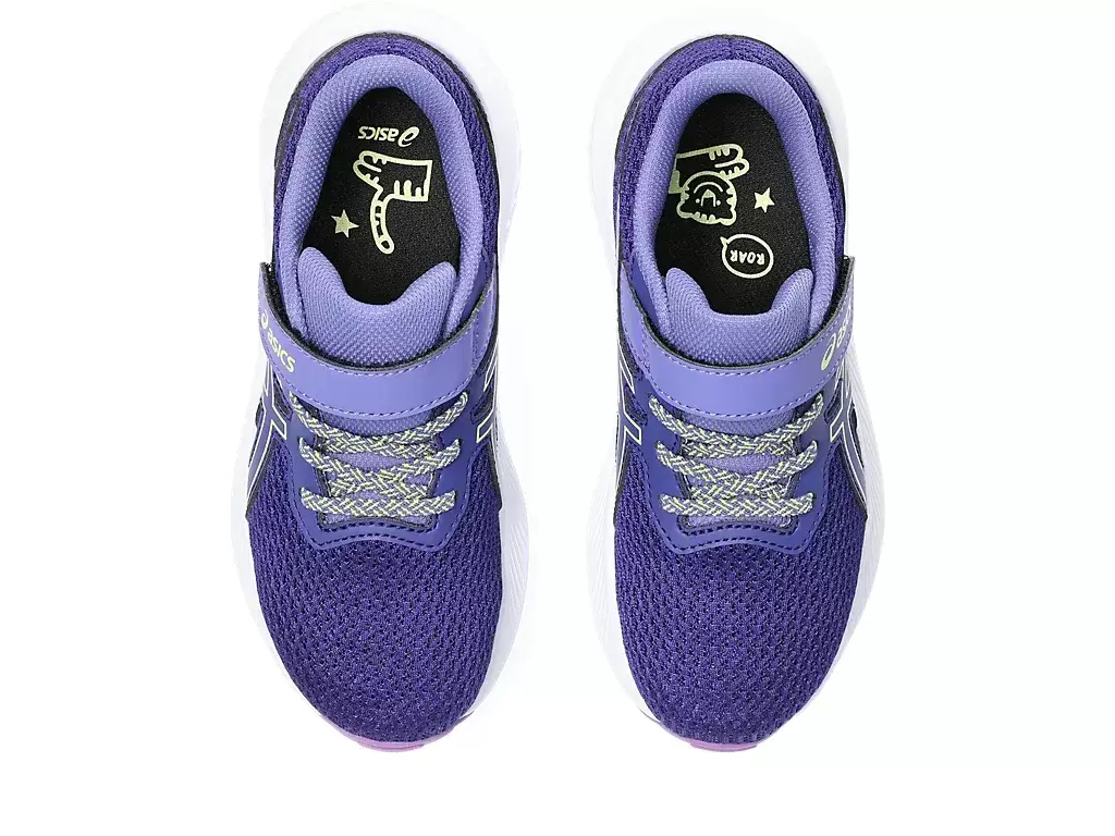 Enquanto isso, as listras ASICS® nas laterais são sobrepostas com um arco-íris para um visual atraente. Também integramos uma palmilha CUB MATCH™ com estampa de tigre® para ajudar as crianças a reconhecerem o pé esquerdo do direito.