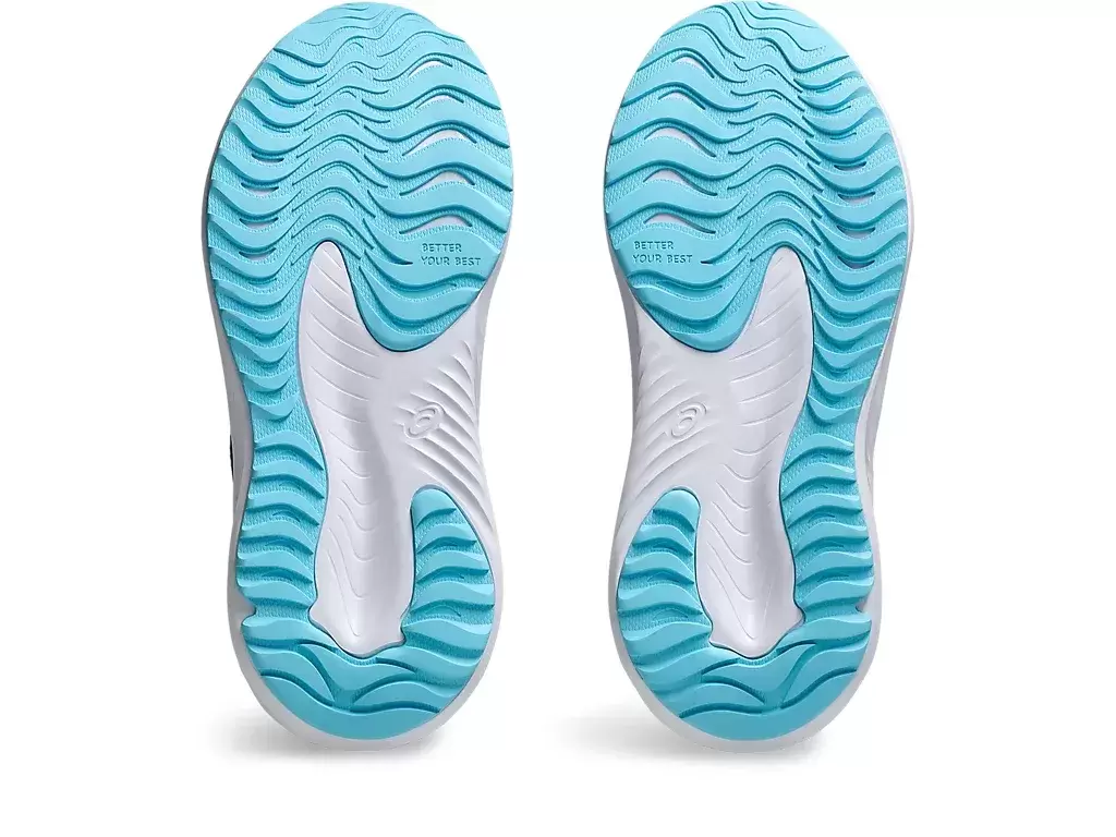 Enquanto isso, as listras ASICS® nas laterais são sobrepostas com um arco-íris para um visual atraente. Também integramos uma palmilha CUB MATCH™ com estampa de tigre® para ajudar as crianças a reconhecerem o pé esquerdo do direito.