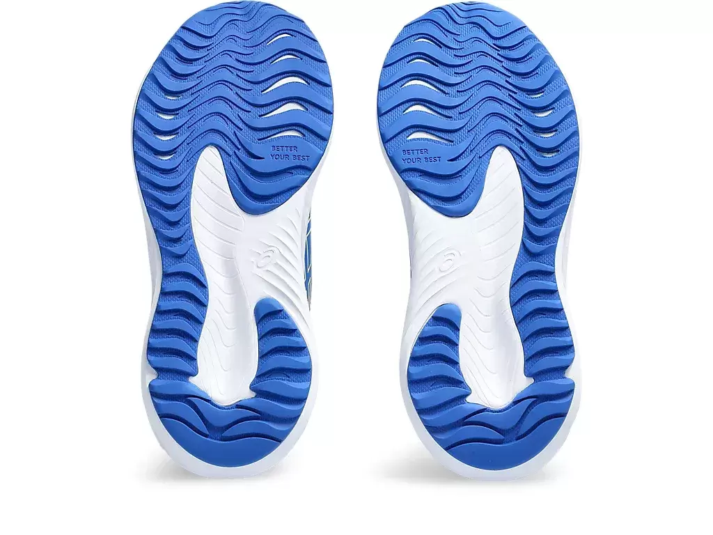 Enquanto isso, as listras ASICS® nas laterais são sobrepostas com um arco-íris para um visual atraente. Também integramos uma palmilha CUB MATCH™ com estampa de tigre® para ajudar as crianças a reconhecerem o pé esquerdo do direito.