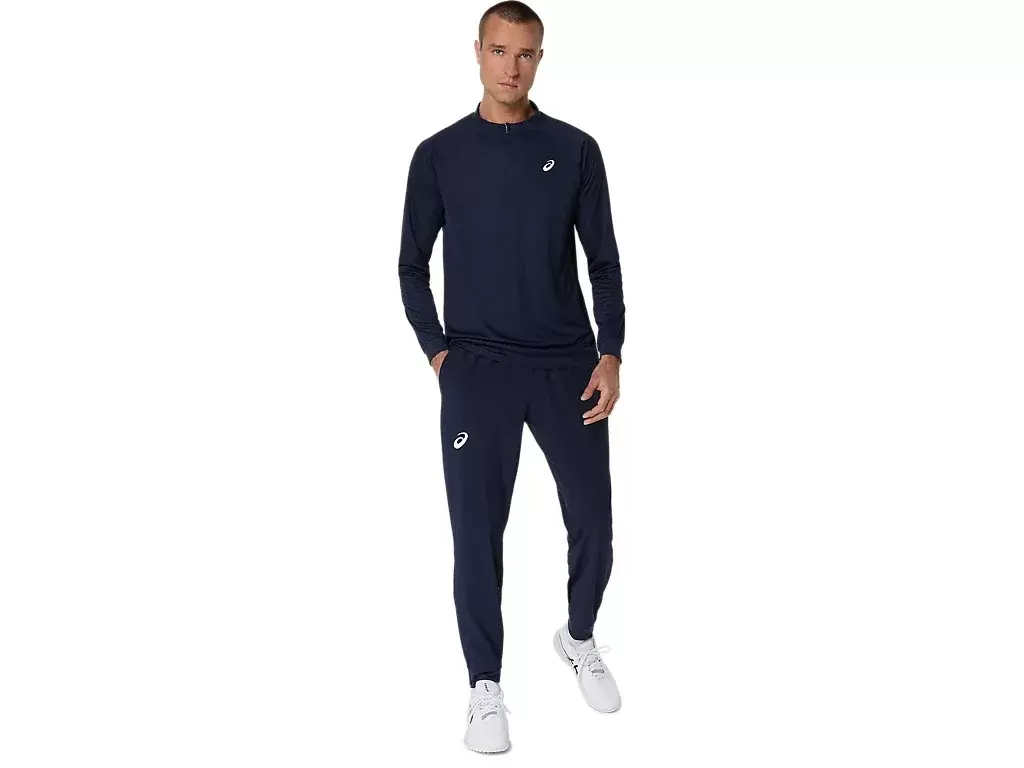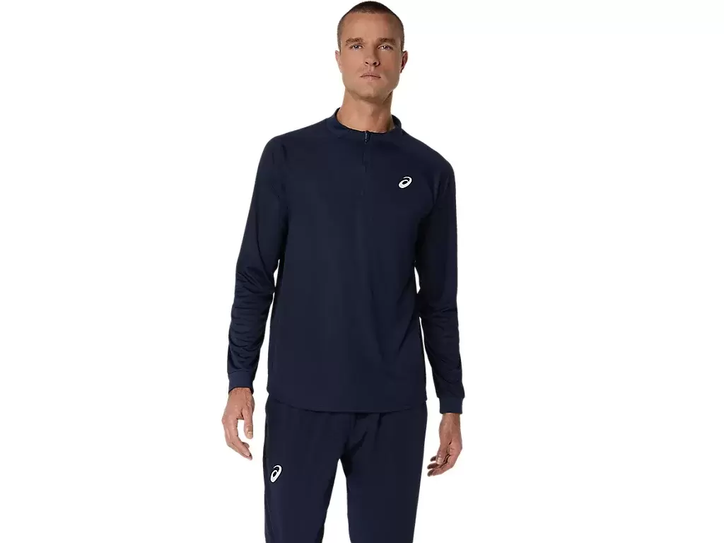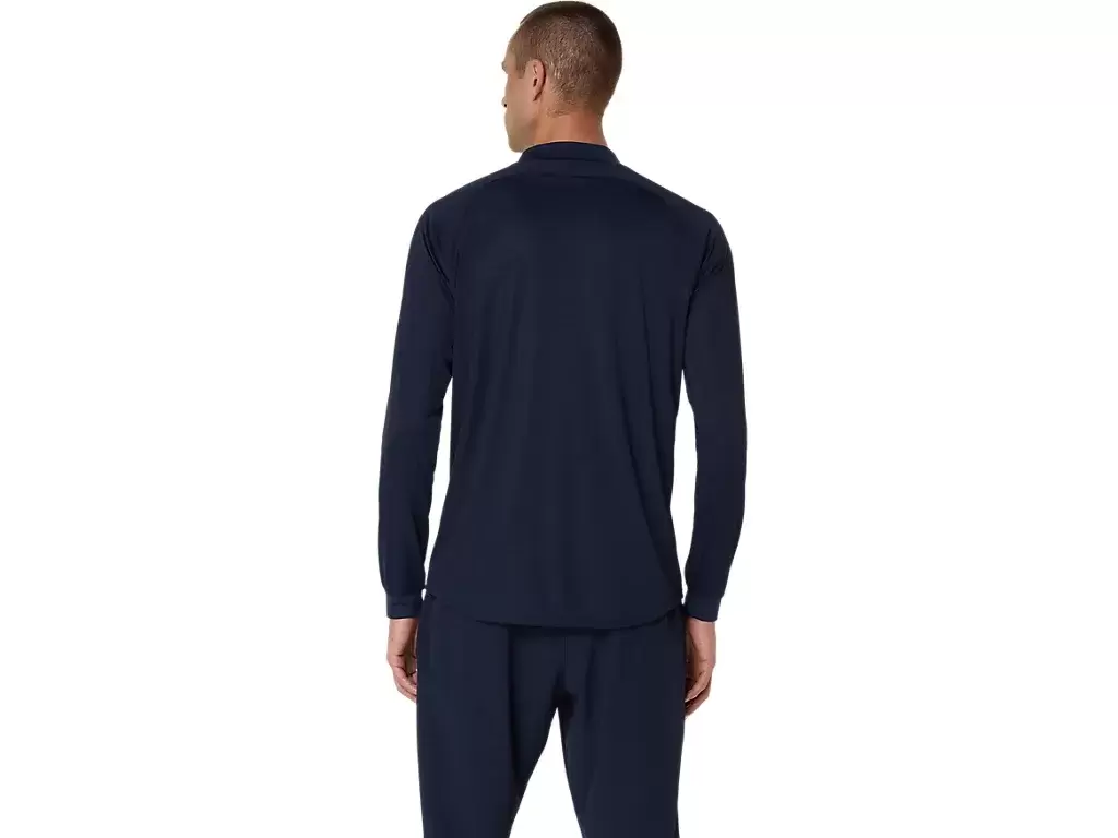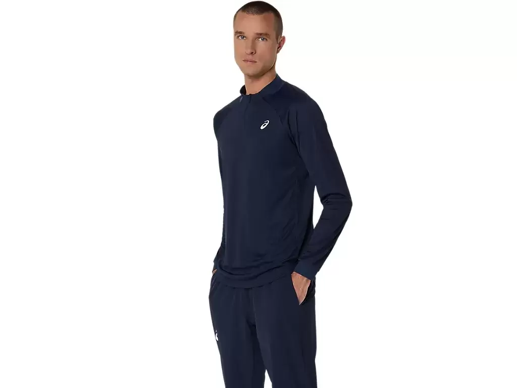 A blusa de manga comprida com zíper até a metade da camisa MATCH é uma peça confortável para aquecimento, alongamento e pós-jogo.