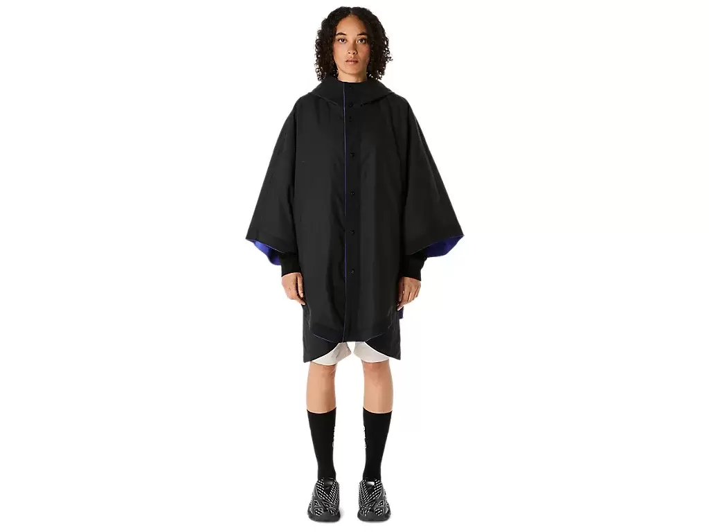 -Construção reversível-Bolsos separados no peito-Capuz ajustável-Design exclusivo de corte das cavas-Tecido elástico-94% nylon, 6% PU