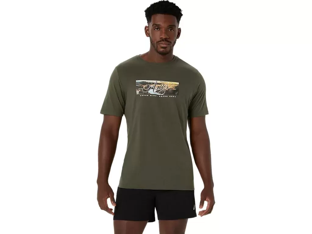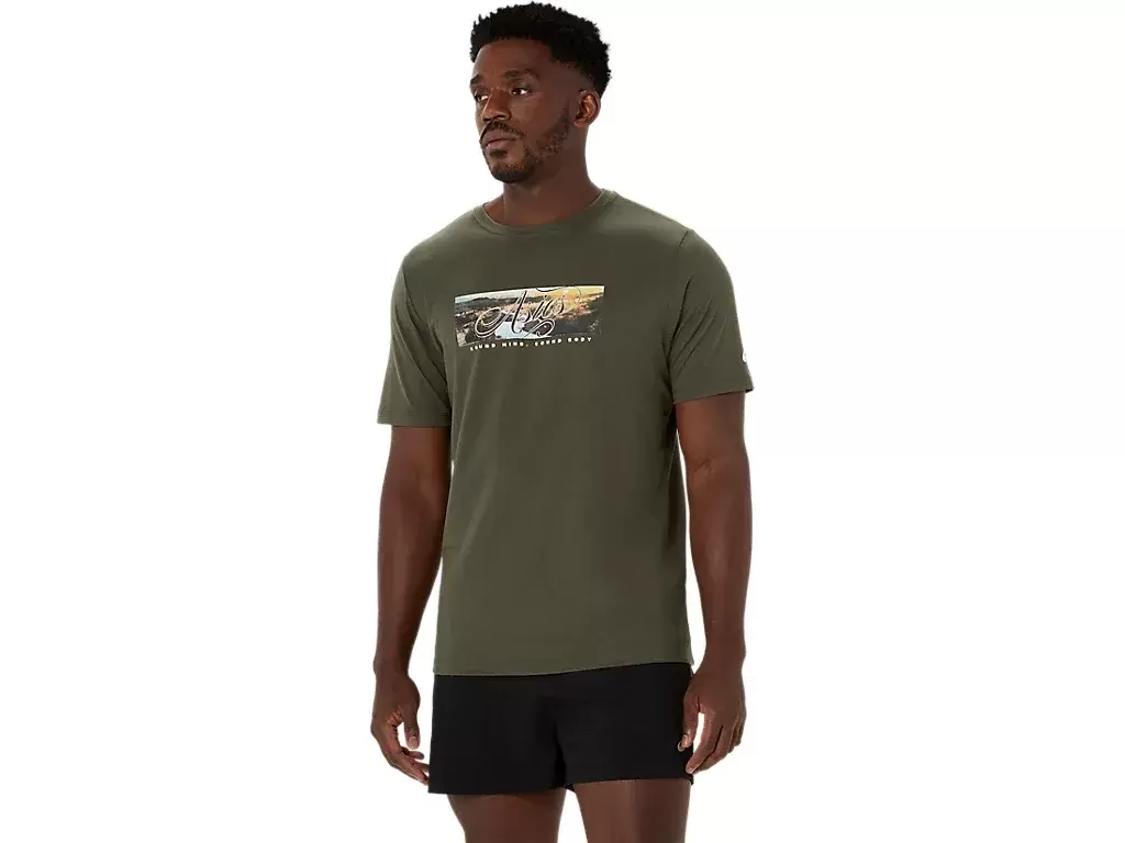Esta camiseta de manga curta em malha confortável se inspira em paisagens montanhosas da natureza.