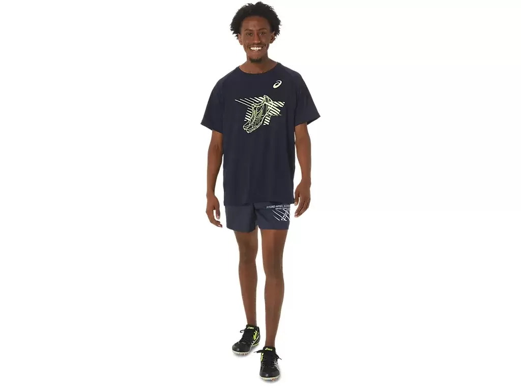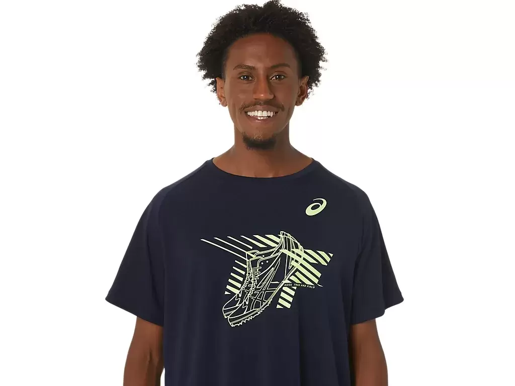 Esta blusa de manga curta é funcional e ajuda você a se manter confortável e seco. Ela também apresenta um tecido de malha confortável com um detalhe de estampa de sapato na frente.