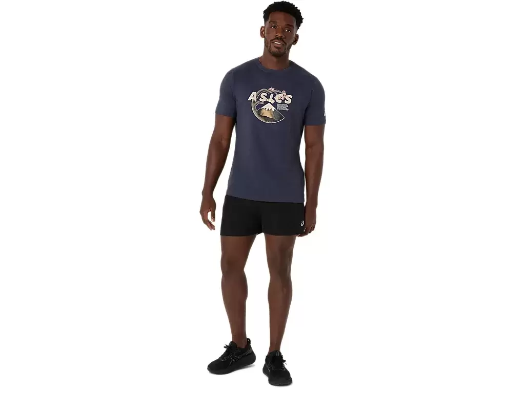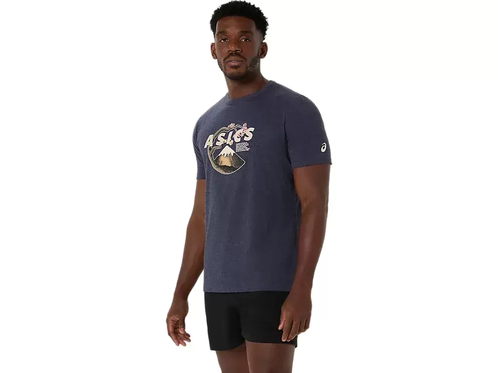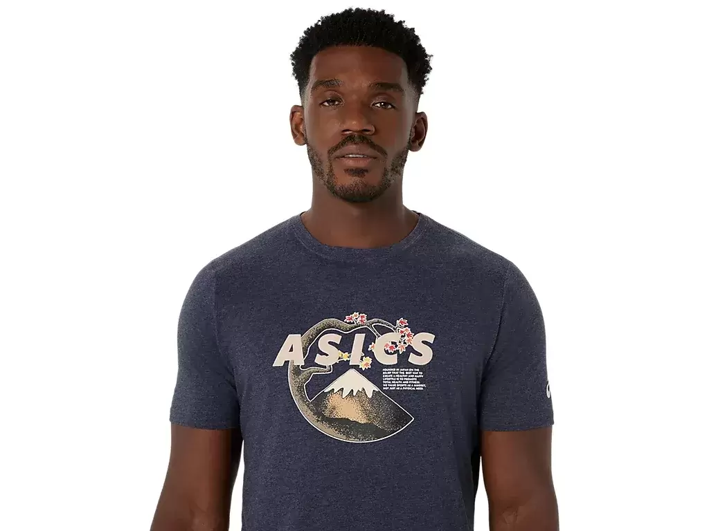 Esta camiseta de manga curta em malha confortável se inspira em cenas da natureza. Ela apresenta uma estampa serena do Monte Fuji e flores de cerejeira no peito.