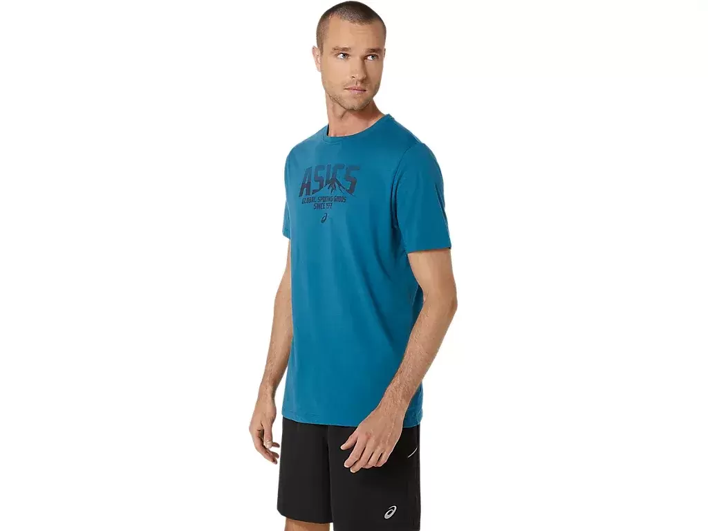 Confeccionada em tecido de malha, esta blusa é funcional para uma variedade de rotinas de treino. Esta camiseta também incorpora um logotipo da ASICS na frente, bem como um logotipo de montanha integrado ao design.