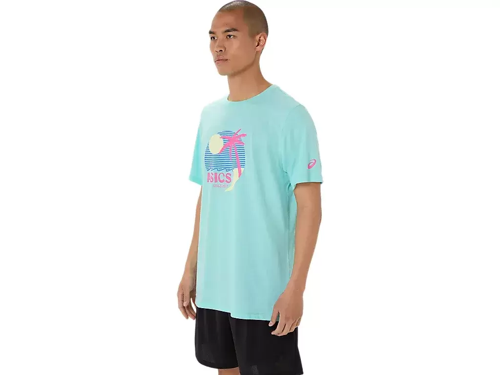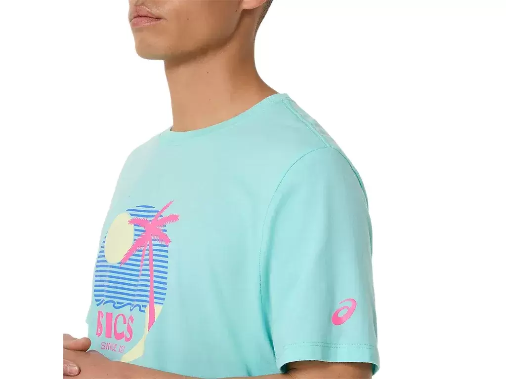 Esta camiseta de manga curta em malha confortável se inspira em praias ensolaradas. A estampa frontal apresenta diversos elementos costeiros complementados por cores vibrantes.