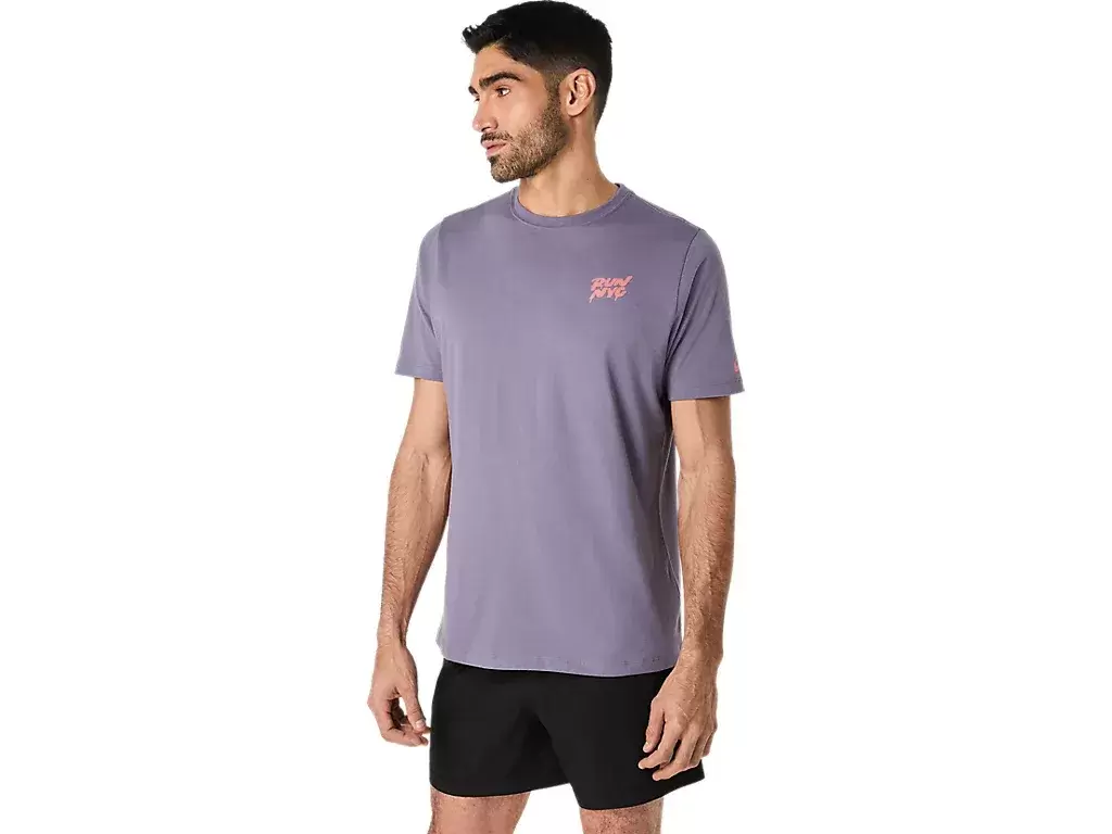 Esta camiseta de manga curta em malha confortável foi inspirada na corrida em Nova York. A frente apresenta a frase “RUN NYC”, complementada por diversos pontos turísticos de Nova York nas costas.