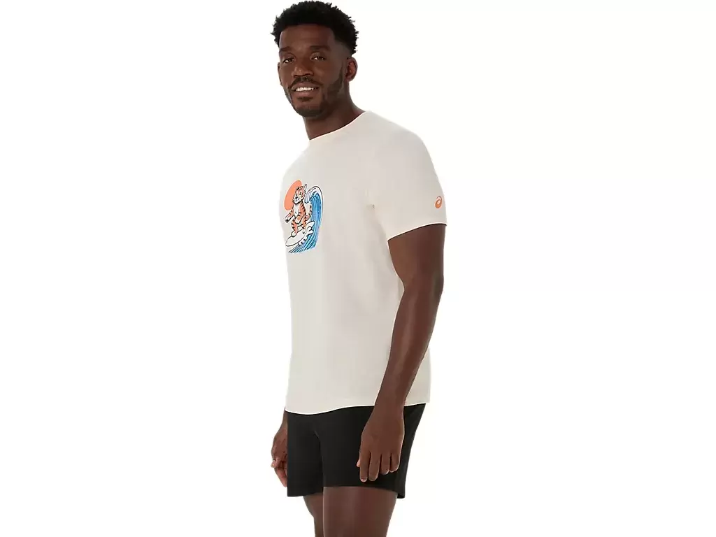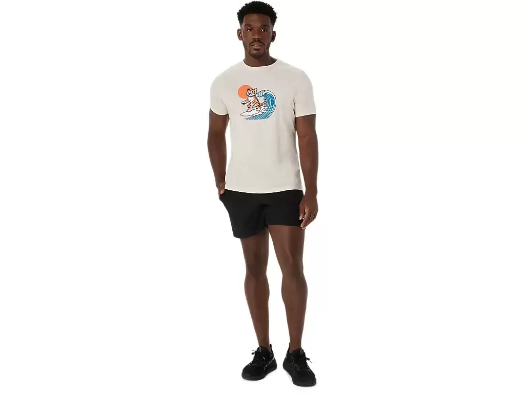 Esta camiseta de manga curta em malha confortável se inspira na praia. A estampa frontal apresenta um tigre surfando, enquanto a frase “SUNSHINE ON MY MIND” aparece abaixo.