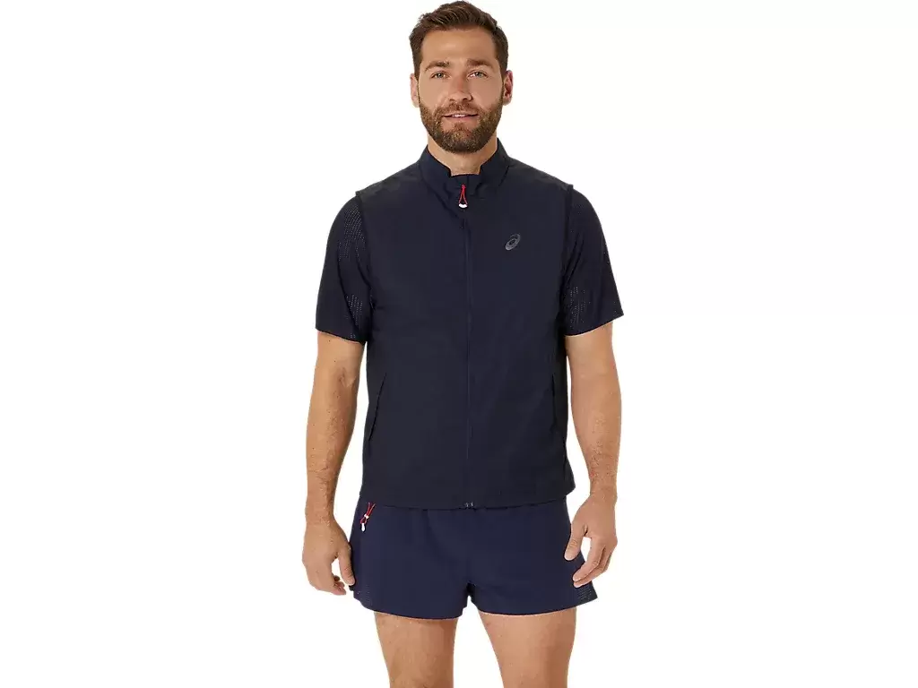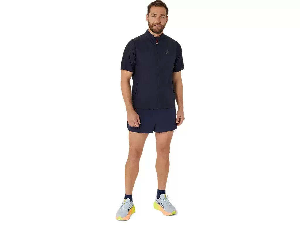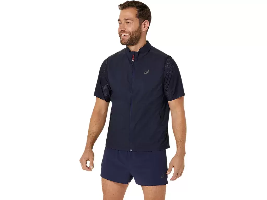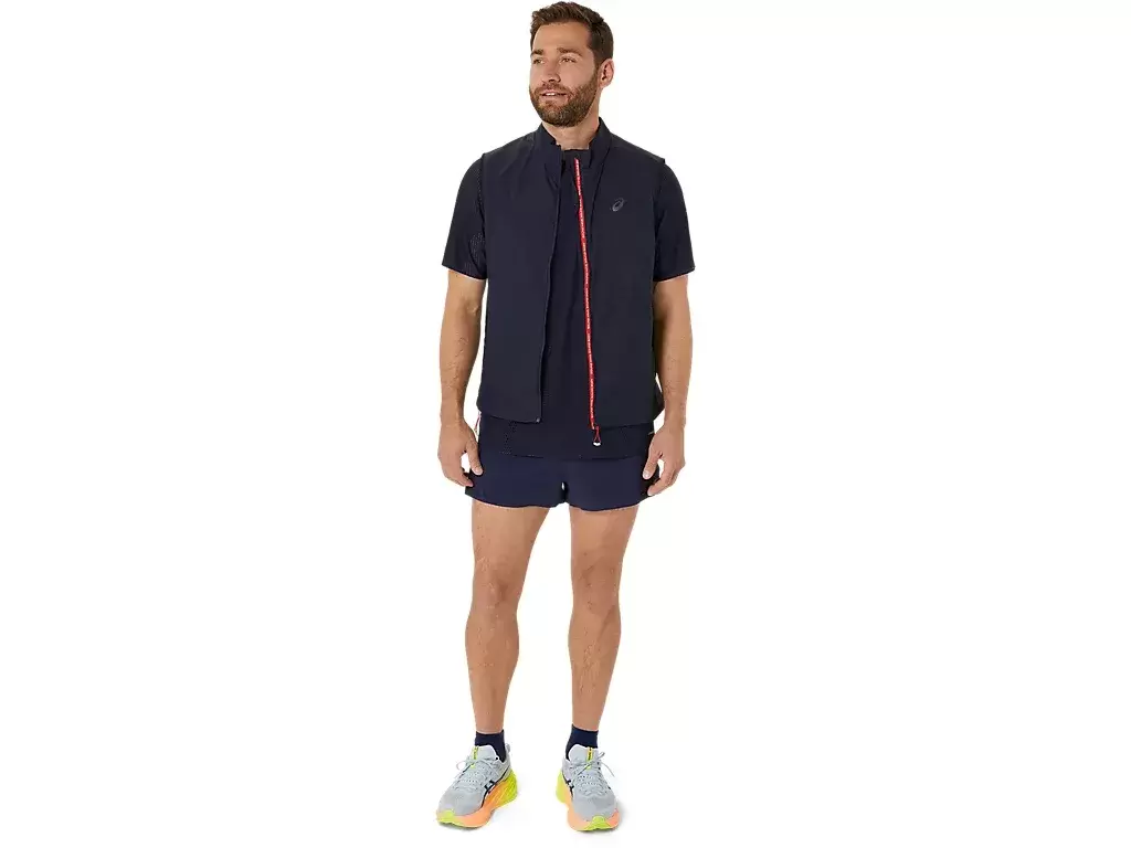 Criado para aqueles dias de corrida em que você não pode confiar no clima. O colete dobrável ASICS® pinnacle METARUN® pode ser facilmente removido e guardado no bolso traseiro durante a corrida. O tecido leve premium desta peça ajuda a proteger contra o frio e o vento.