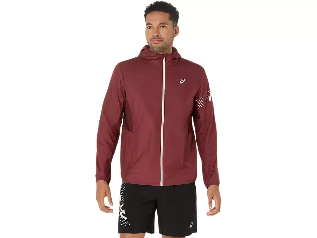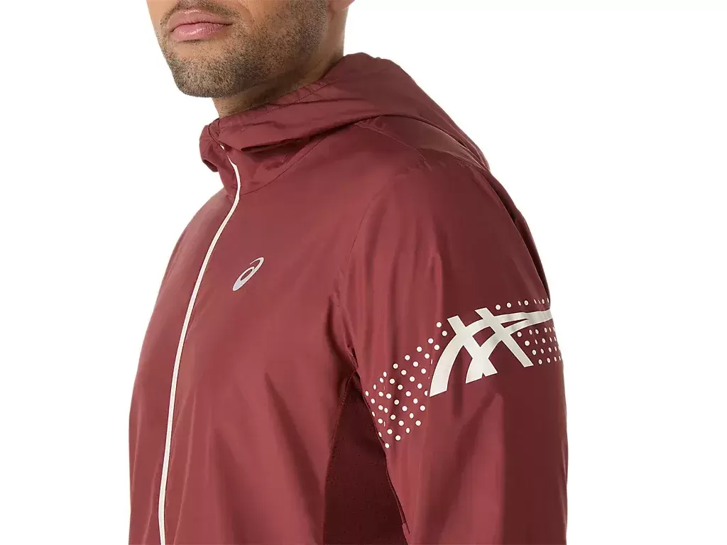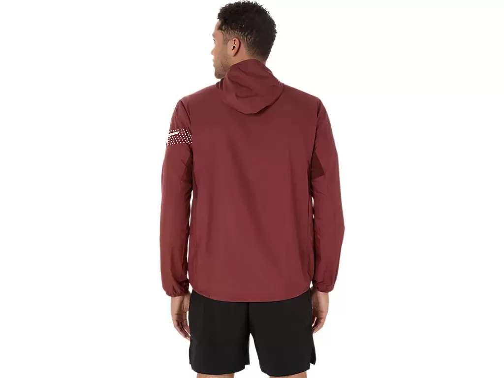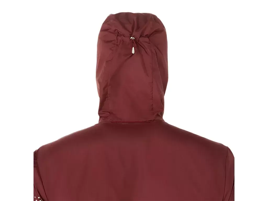 Também possui um capuz ajustável para proteção adicional e bolsos laterais com zíper para guardar itens essenciais para corrida.