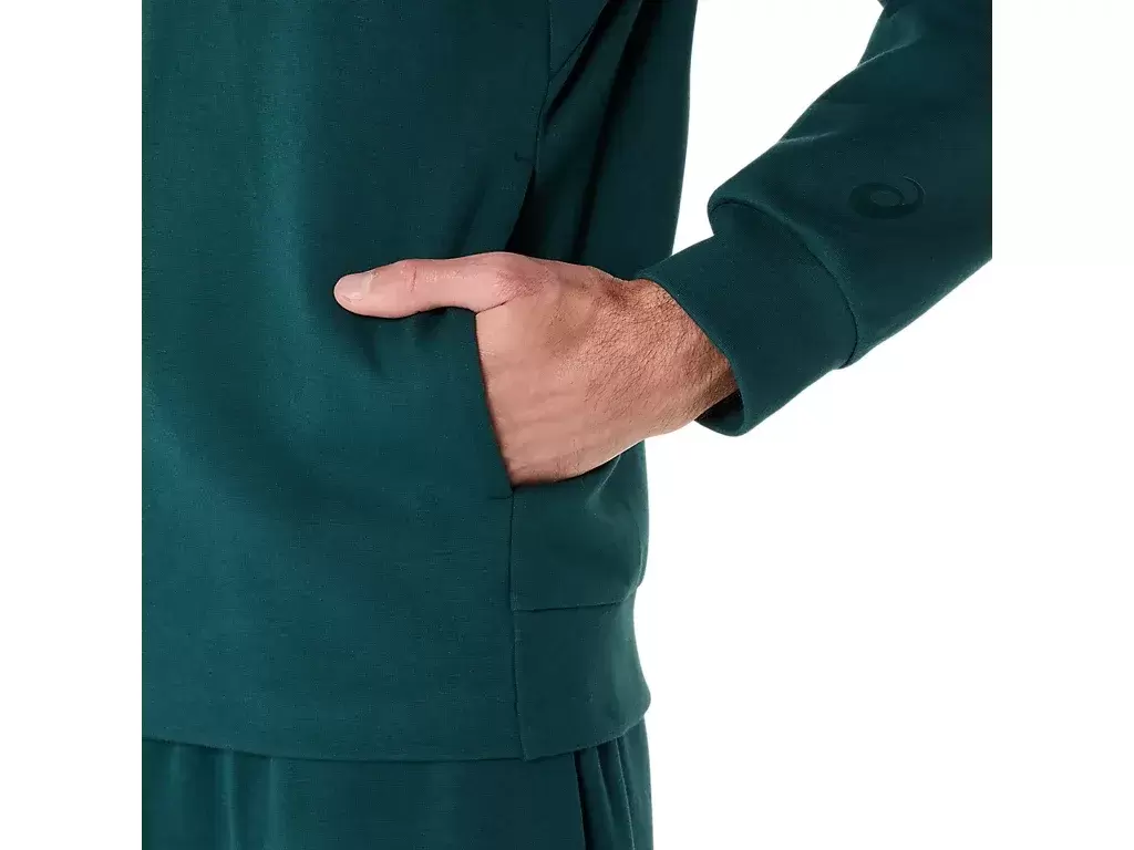 Esta peça conta com zíper frontal completo para facilitar o uso e bolsos laterais para guardar itens essenciais. É versátil, podendo ser usada como uma peça casual ou como aquecimento durante o treino.