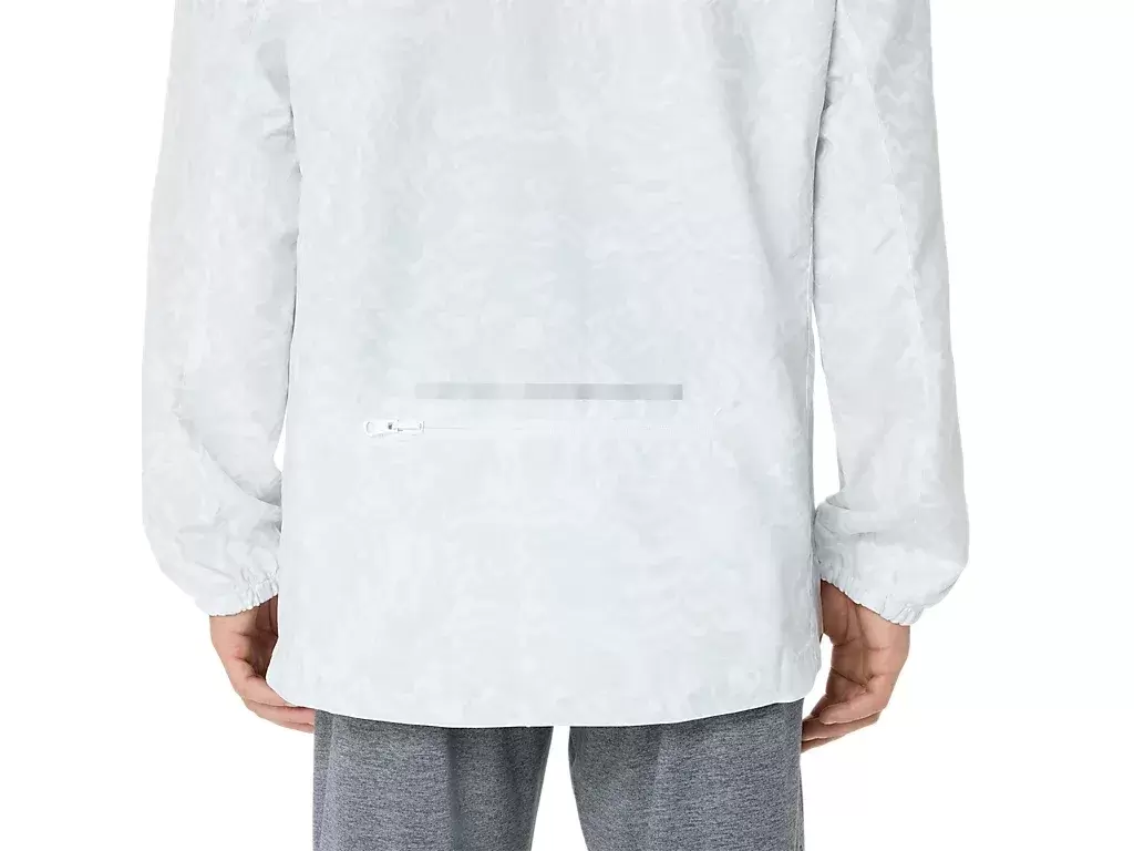 Esta jaqueta dobrável é uma peça leve, projetada para diversos tipos de treino e aquecimento.