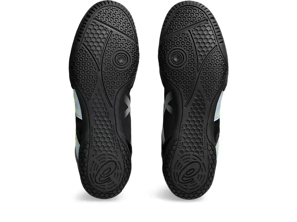 Funcional para melhorar a tração em superfícies de tatame, o calçado também incorpora ranhuras de flexão na sola para maior flexibilidade.