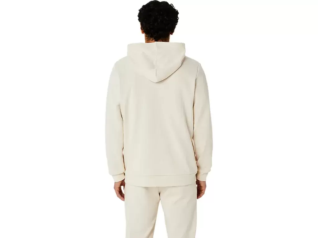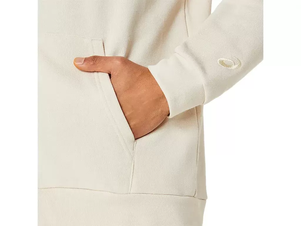 O moletom possui ombros caídos para maior liberdade de movimento, capuz para proteção contra os elementos e bolsos laterais para guardar seus pertences.