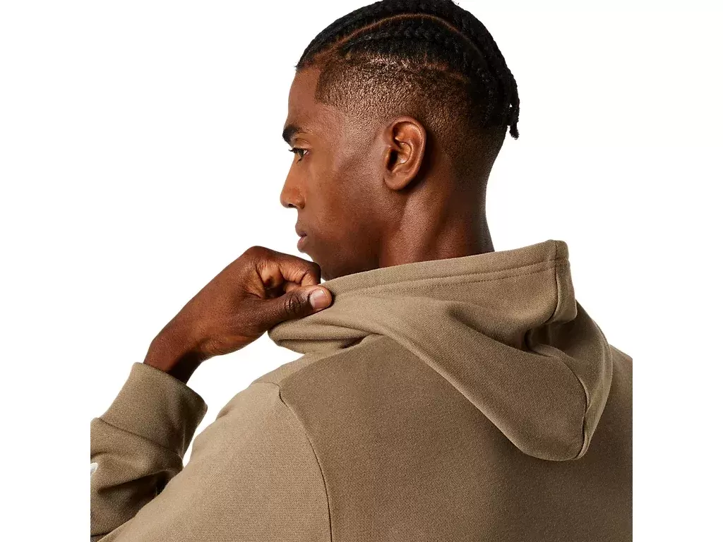 O moletom possui ombros caídos para maior liberdade de movimento, capuz para proteção contra os elementos e bolsos laterais para guardar seus pertences.