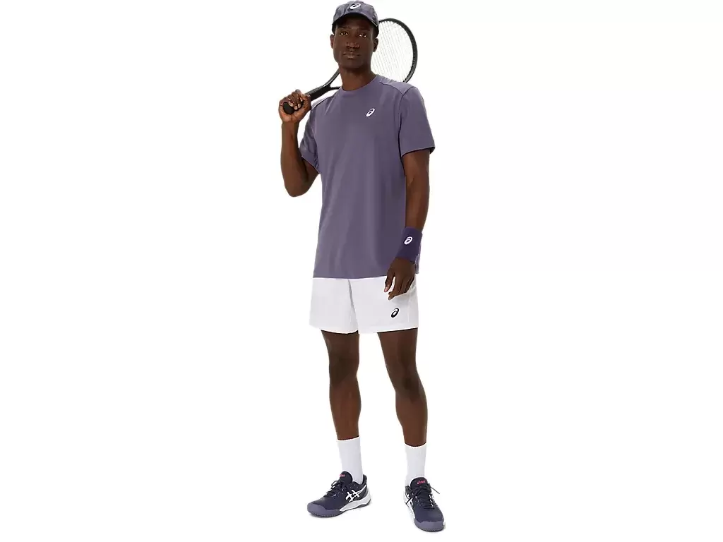 A CAMISETA DE MANGA CURTA COURT apresenta um design clássico e atemporal, perfeito para diversas partidas e treinos. Confeccionada com um material clássico de tênis, ela absorve a umidade com seu tecido macio e de secagem rápida, proporcionando conforto.