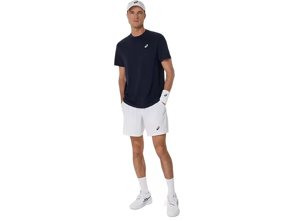 A CAMISETA DE MANGA CURTA COURT apresenta um design clássico e atemporal, perfeito para diversas partidas e treinos. Confeccionada com um material clássico de tênis, ela absorve a umidade com seu tecido macio e de secagem rápida, proporcionando conforto.