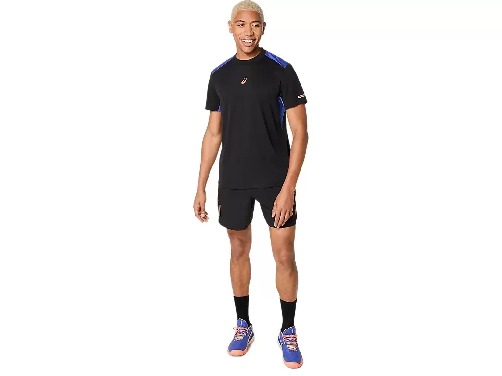 Esta camiseta de padel de manga curta apresenta um design clássico de padel e blocos de cores, atemporal para uma variedade de partidas e treinos.