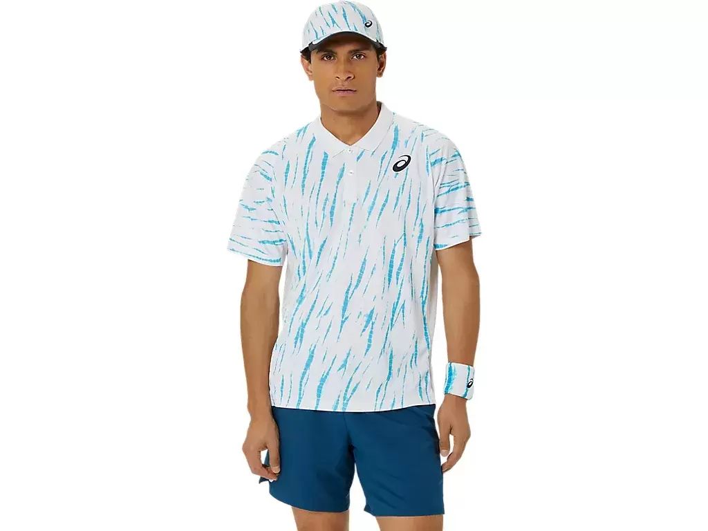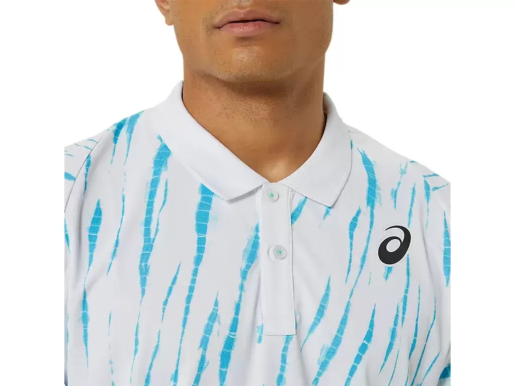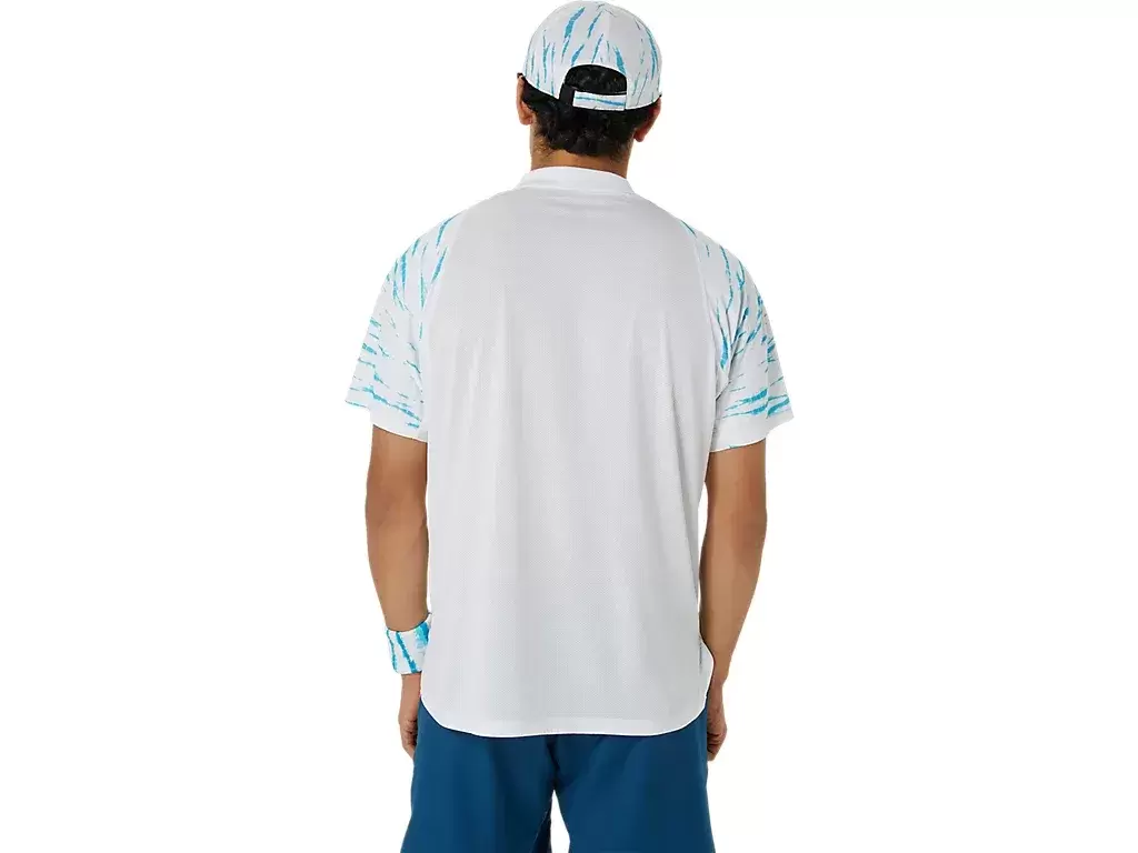 Além disso, esta camisa apresenta uma estampa gráfica por toda a peça, inspirada no Shibori, técnicas tradicionais japonesas de tingimento.