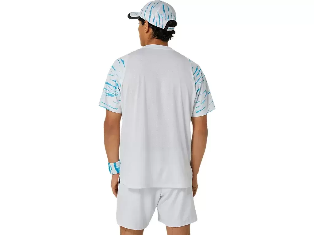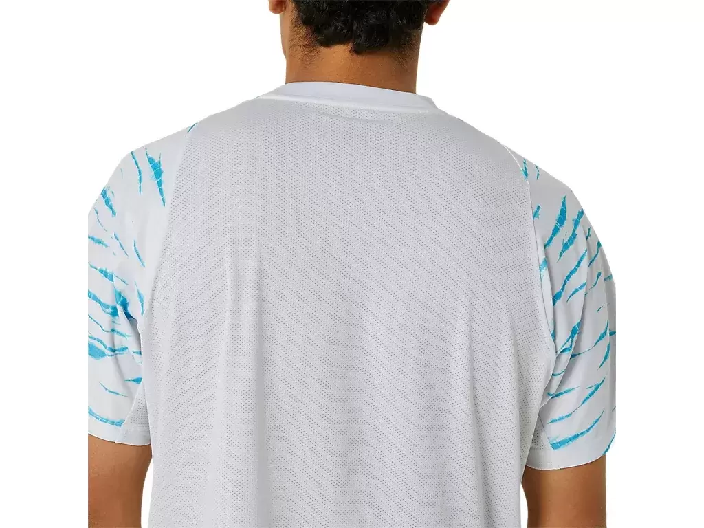 Além disso, esta camiseta apresenta uma estampa gráfica por toda a peça, inspirada no Shibori, técnica tradicional japonesa de tingimento.