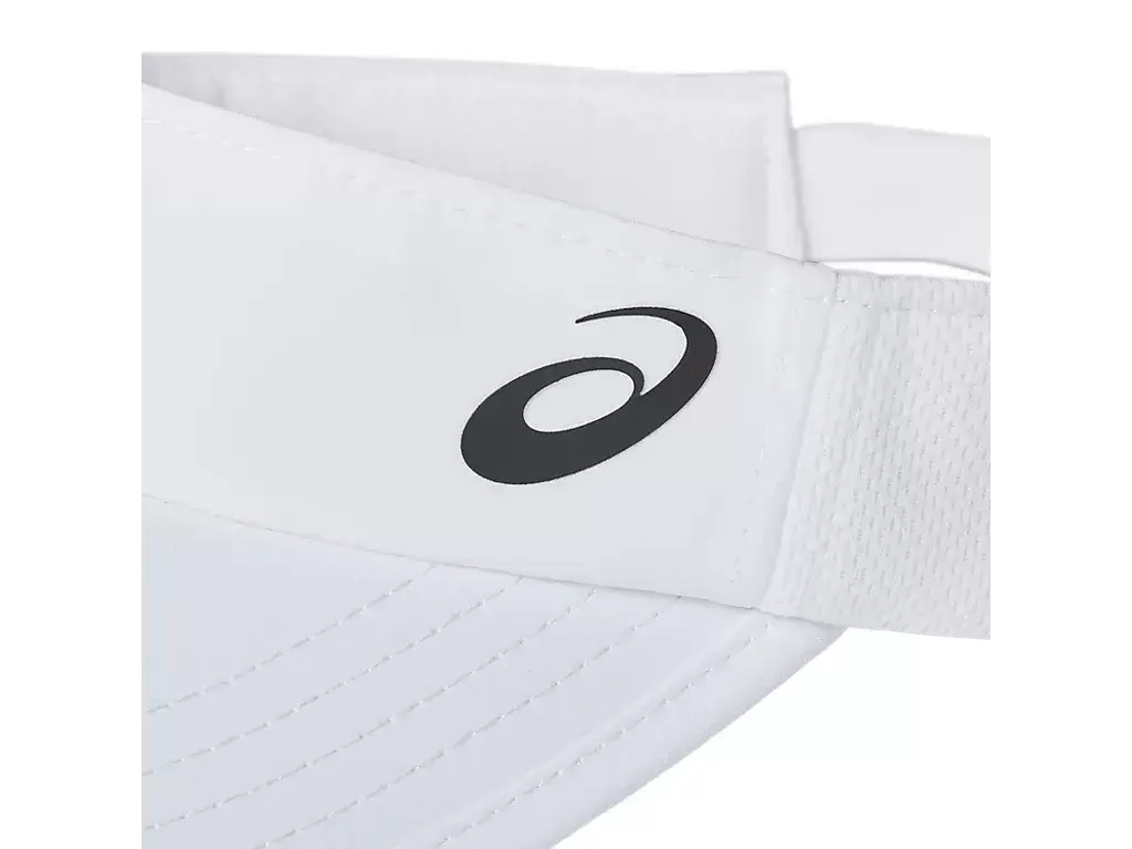 Esta viseira foi projetada com uma aba curva para ajudar a proteger seu rosto do sol. Ela também possui uma tira ajustável na parte de trás e boas propriedades de absorção de umidade para ajudar a mantê-lo seco nas quadras.