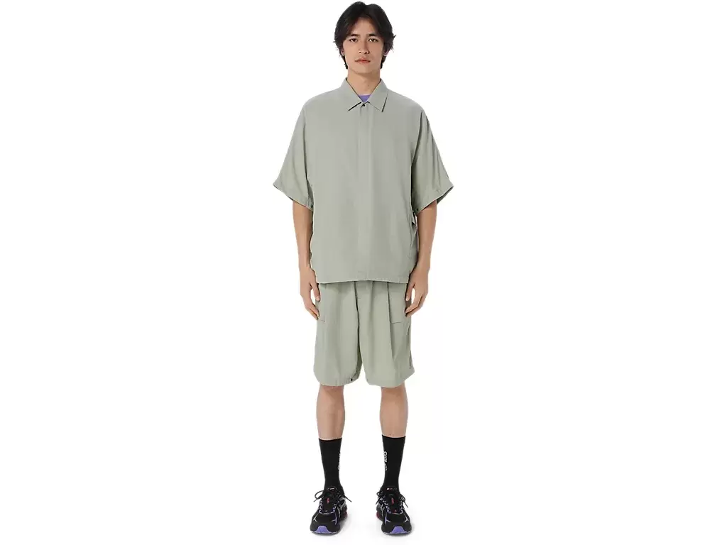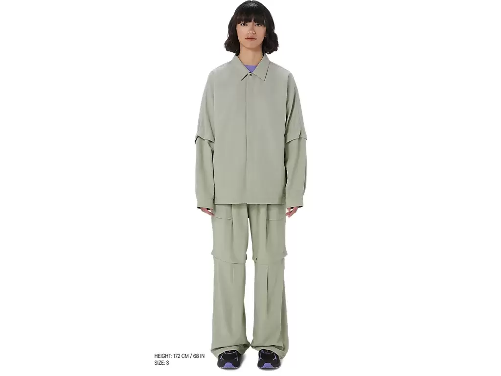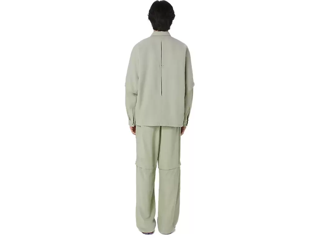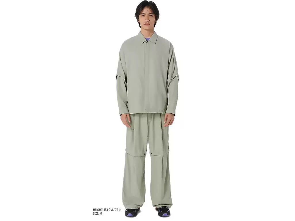 Esta calça apresenta uma construção versátil que permite diferentes formas de uso.