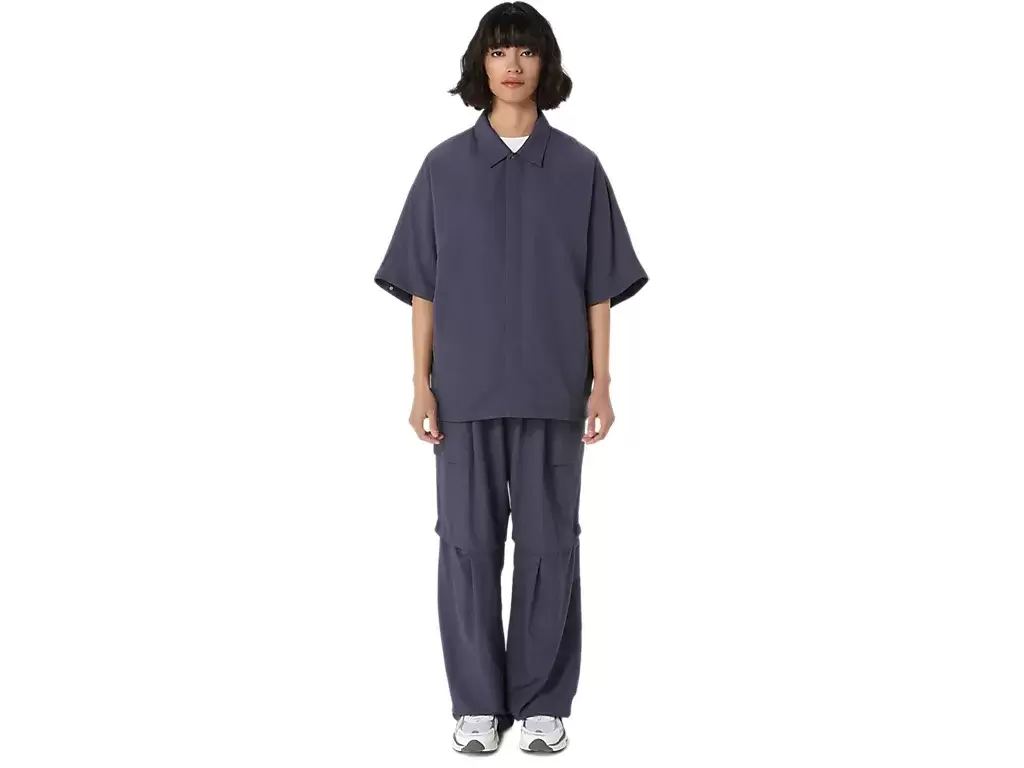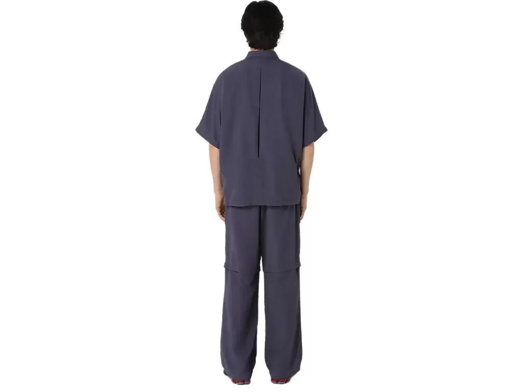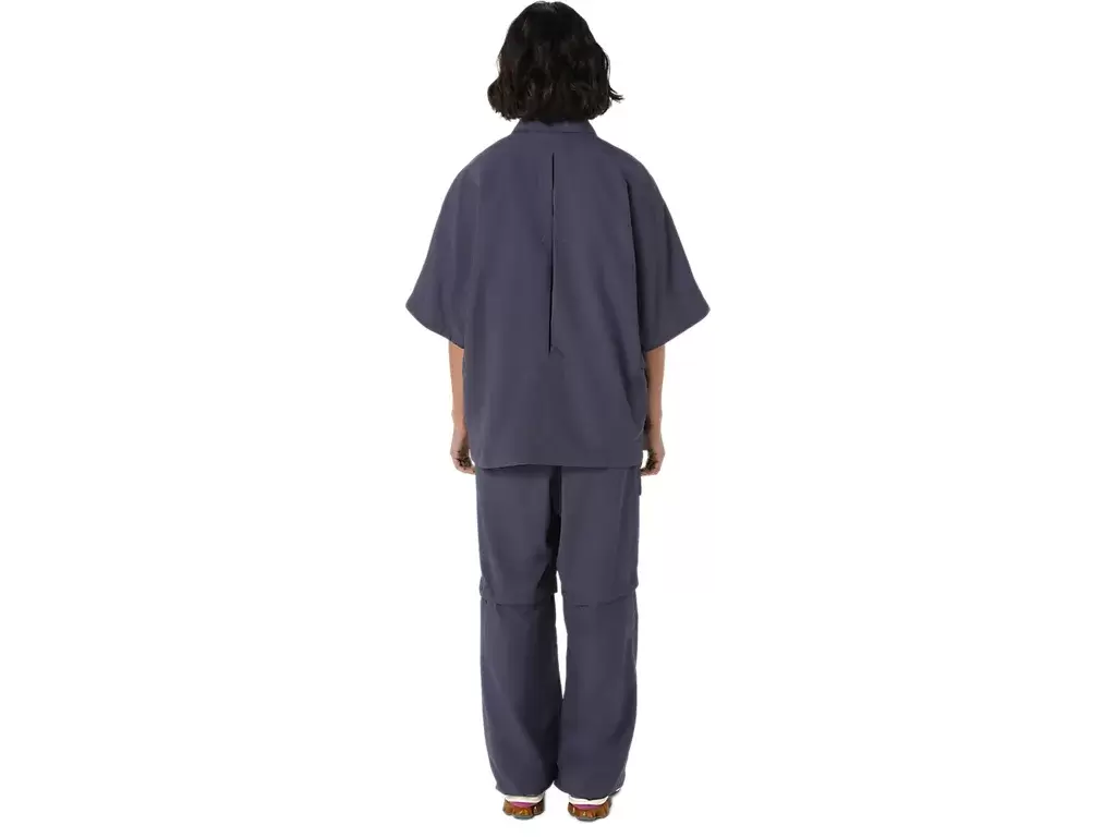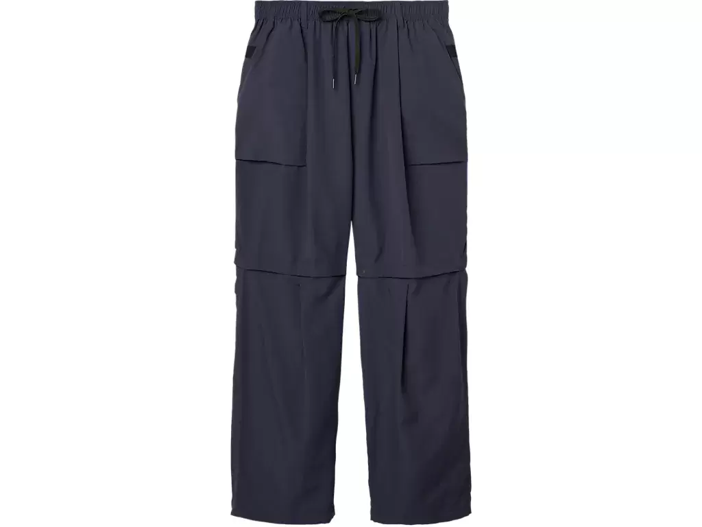 Esta calça apresenta uma construção versátil que permite diferentes formas de uso.