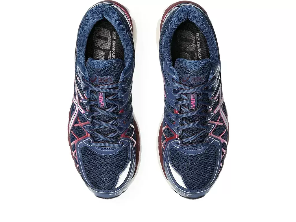 Lançado originalmente em 2013, o tênis GEL-KAYANO® 20 combina uma estética técnica com conforto duradouro para o dia a dia. Sua estrutura FLUIDFIT™ exclusiva oferece suporte estrutural com um ajuste perfeito e um design exclusivo em formato de cruz.