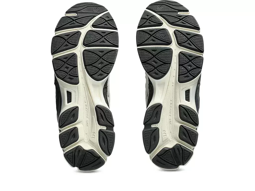 O solado contrasta com as influências retrô do cabedal utilizando o sistema de solado do tênis GEL-CUMULUS® 16.