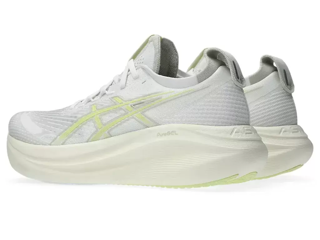 O amortecimento macio do tênis GEL-NIMBUS® 27 proporciona a sensação de estar pisando em nuvens. Este design foi reformulado para criar uma experiência de corrida mais suave e confortável.