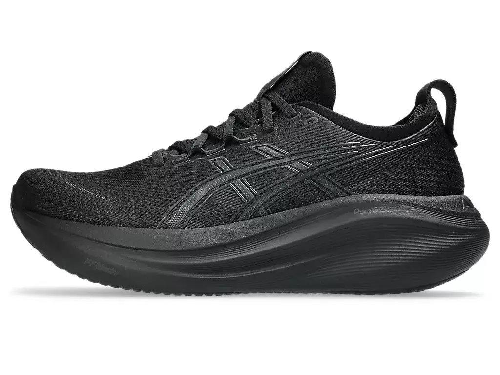 O amortecimento macio do tênis GEL-NIMBUS® 27 proporciona a sensação de estar pisando em nuvens. Este design foi reformulado para criar uma experiência de corrida mais suave e confortável.