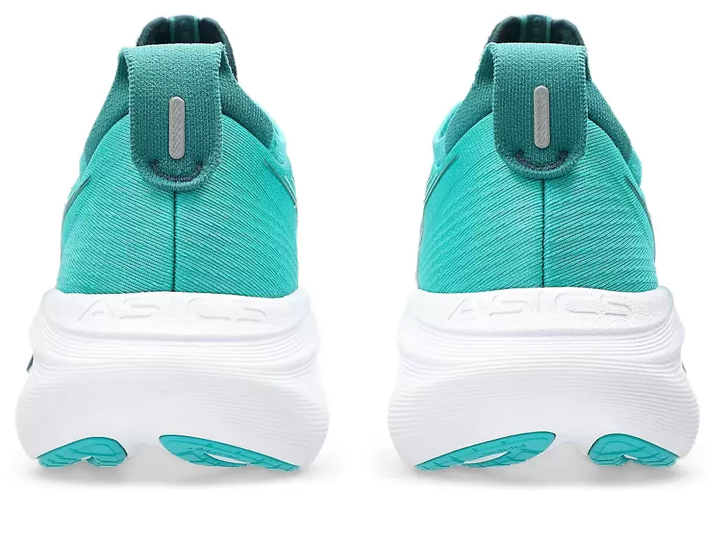 O amortecimento macio do tênis GEL-NIMBUS® 27 proporciona a sensação de estar pisando em nuvens. Este design foi reformulado para criar uma experiência de corrida mais suave e confortável.