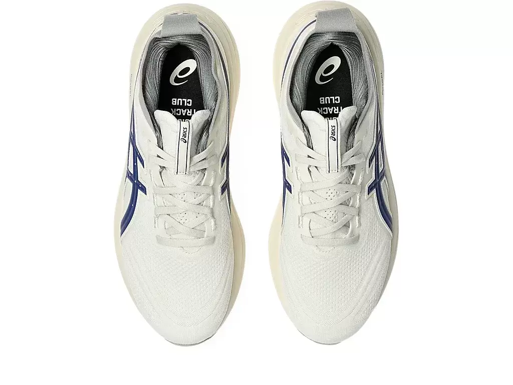 O amortecimento macio do tênis GEL-NIMBUS® 27 ASICS® TRACK CLUB ajuda você a se sentir como se estivesse pisando em nuvens. Este design foi reformulado para proporcionar uma experiência de corrida mais suave e confortável. Sua paleta de cores é inspirada nos agasalhos e tênis de corrida dos anos 80.