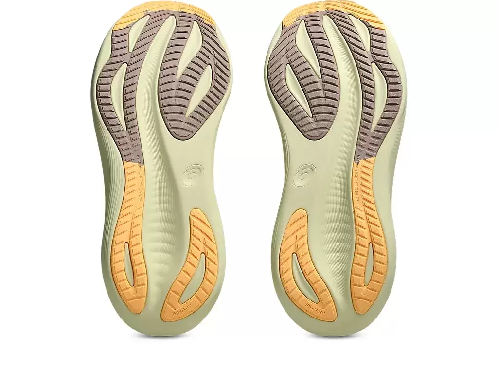Por fim, o solado HYBRID ASICSGRIP™ combina a borracha ASICSGRIP™ e os materiais AHARPLUS™ para proporcionar aderência avançada em diversos terrenos e durabilidade superior.