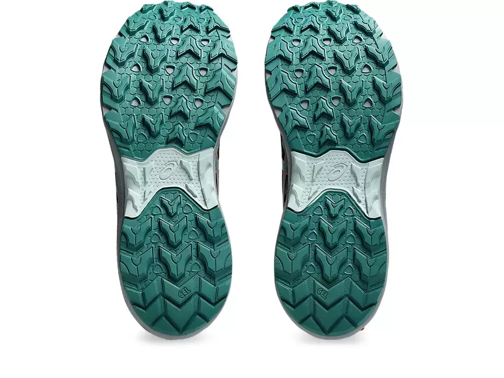 Enquanto isso, o solado apresenta um padrão de tração avançado, funcional tanto para asfalto quanto para trilhas.