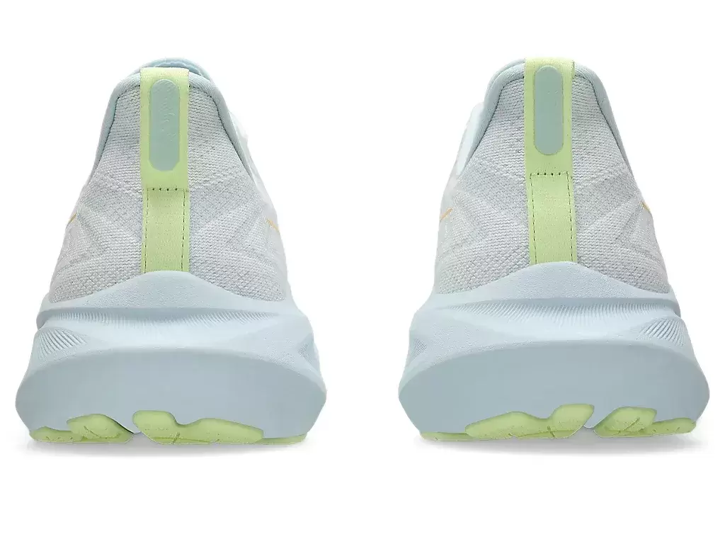 A entressola implementa uma unidade de amortecimento FF BLAST™ PLUS de comprimento total e a tecnologia PureGEL™. Esses recursos ajudam a proporcionar uma impulsão mais energizada com maciez semelhante a uma nuvem sob os pés.