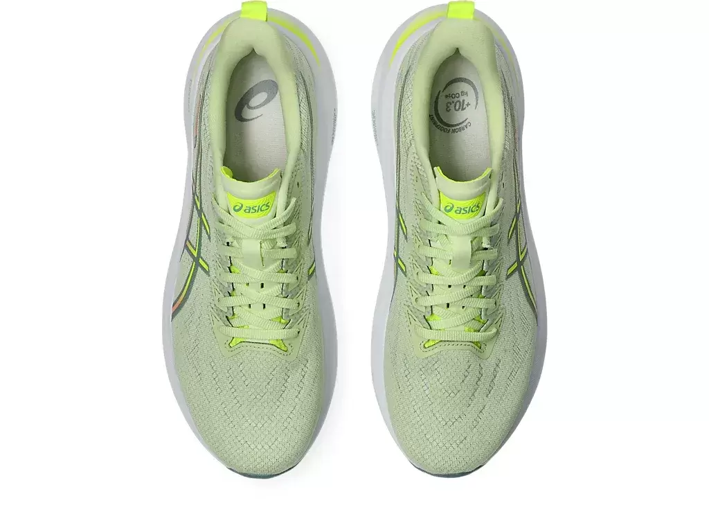 A entressola implementa uma unidade de amortecimento FF BLAST™ PLUS de comprimento total e a tecnologia PureGEL™. Esses recursos ajudam a proporcionar uma impulsão mais energizada com maciez semelhante a uma nuvem sob os pés.