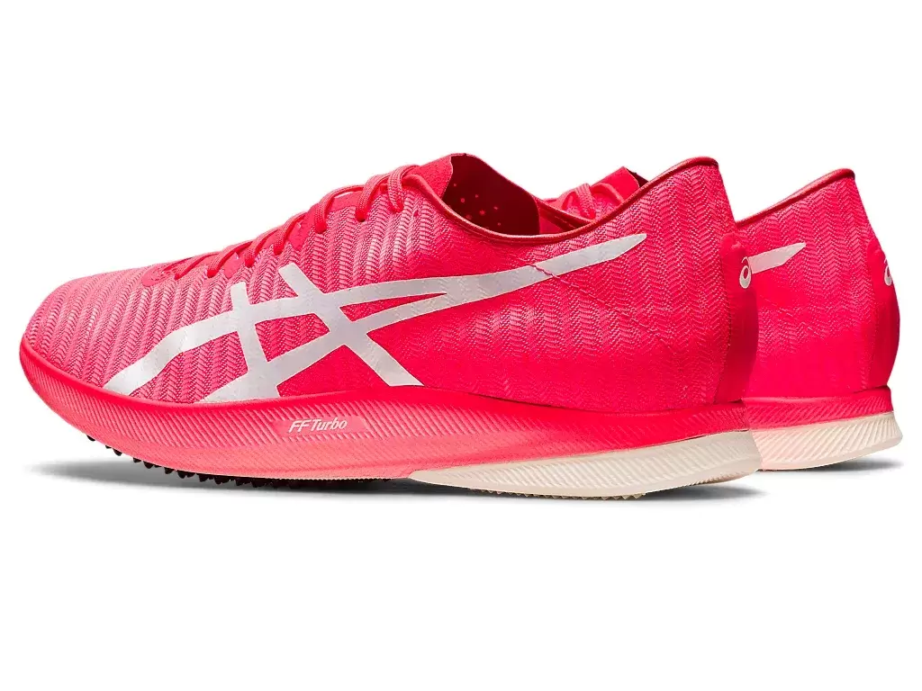A sapatilha de corrida METASPEED™ LD ajuda os velocistas a darem passadas mais longas com menos esforço. Com amortecimento FF BLAST TURBO™, esta sapatilha permite que você experimente um retorno de energia mais responsivo na impulsão. Ela é combinada com uma placa de carbono de comprimento total que impulsiona você para a frente com uma passada mais longa. A construção em carbono sem pinos da sola foi projetada para aumentar a tração. Em vez de perfurar a superfície da pista, ela desliza sobre ela para ajudar você a conservar energia entre os passos.