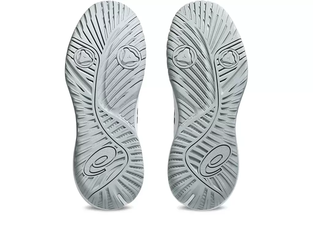 Borracha de alta resistência à abrasão da ASICS, localizada na área do calcanhar, que é aproximadamente três vezes mais durável do que a sola padrão. Borrachas.
