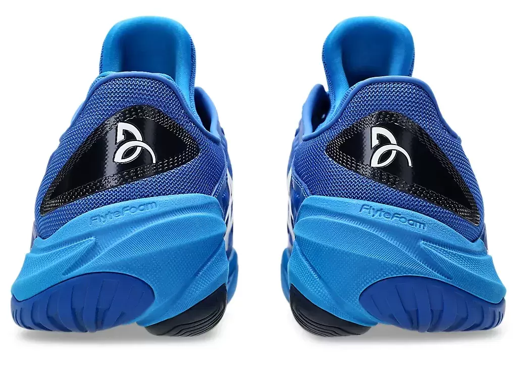 Novak tem um golpe sem passo. Isso significa que ele está balançando a raquete no momento do pouso. Ao aumentar a área de contato do solado, o tênis ajuda a criar um pouso estável e pode reduzir a carga sobre o corpo. Como resultado, você consegue colocar mais energia para gerar um golpe poderoso.