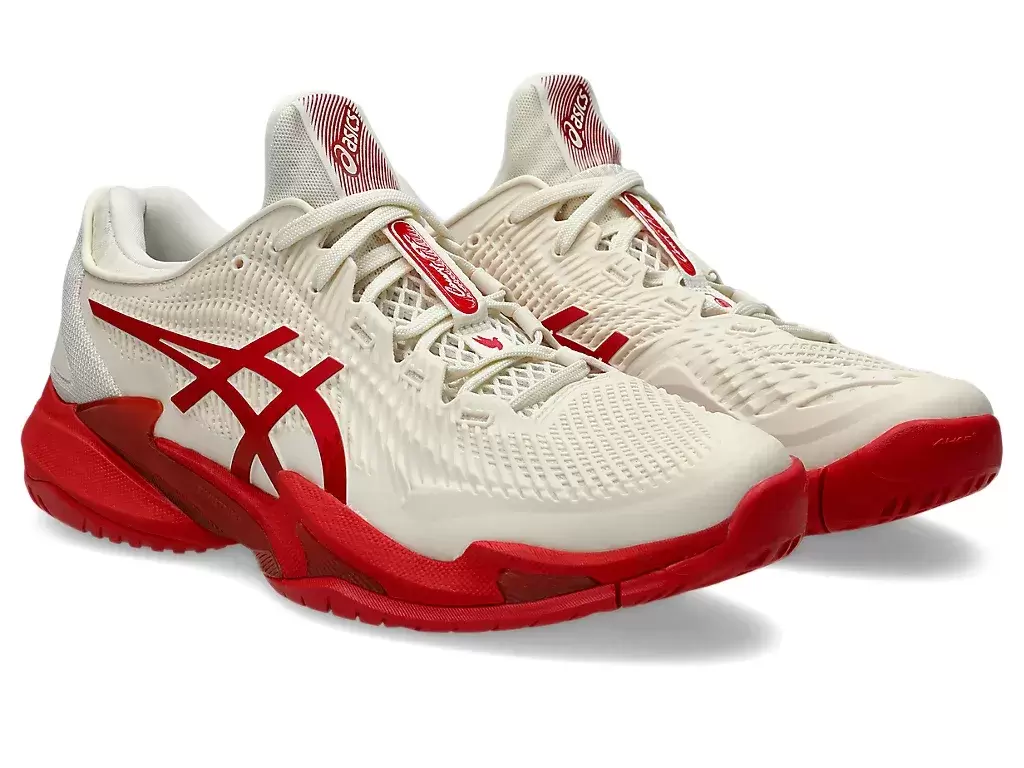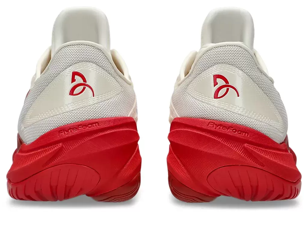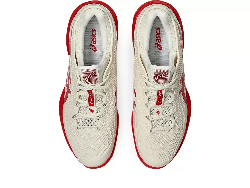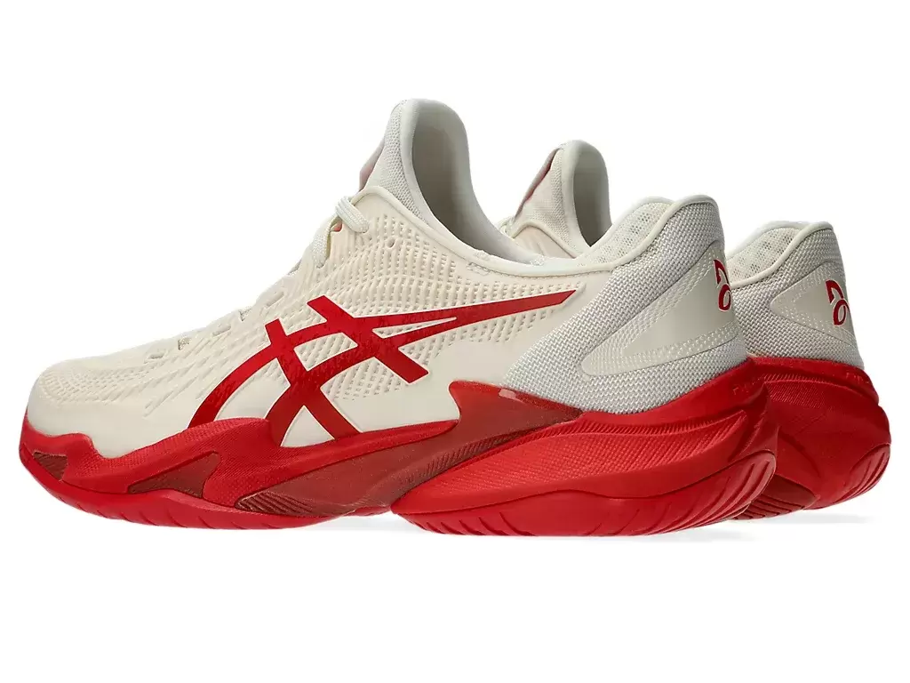 Novak tem um golpe sem passo. Isso significa que ele está balançando a raquete no momento do pouso. Ao aumentar a área de contato do solado, o tênis ajuda a criar um pouso estável e pode reduzir a carga sobre o corpo. Como resultado, você consegue colocar mais energia para gerar um golpe poderoso.