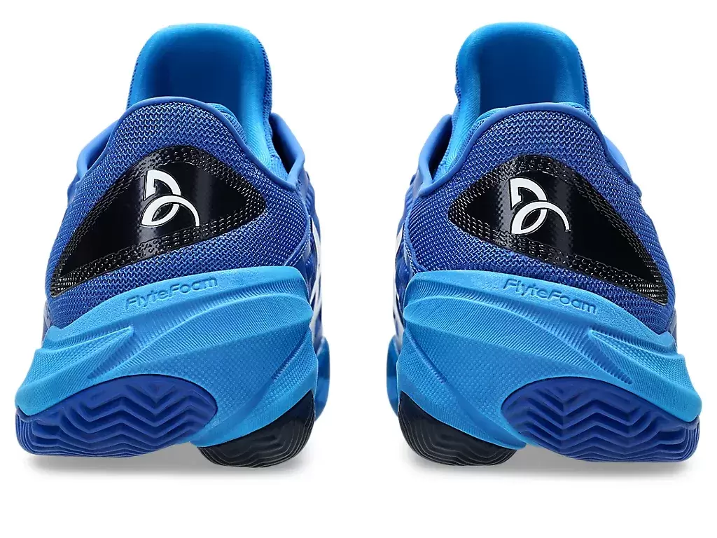 Novak tem um golpe sem passo. Isso significa que ele está balançando a raquete no momento do pouso. Ao aumentar a área de contato do solado, o tênis ajuda a criar um pouso estável e pode reduzir a carga sobre o corpo. Como resultado, você consegue colocar mais energia para gerar um golpe poderoso.